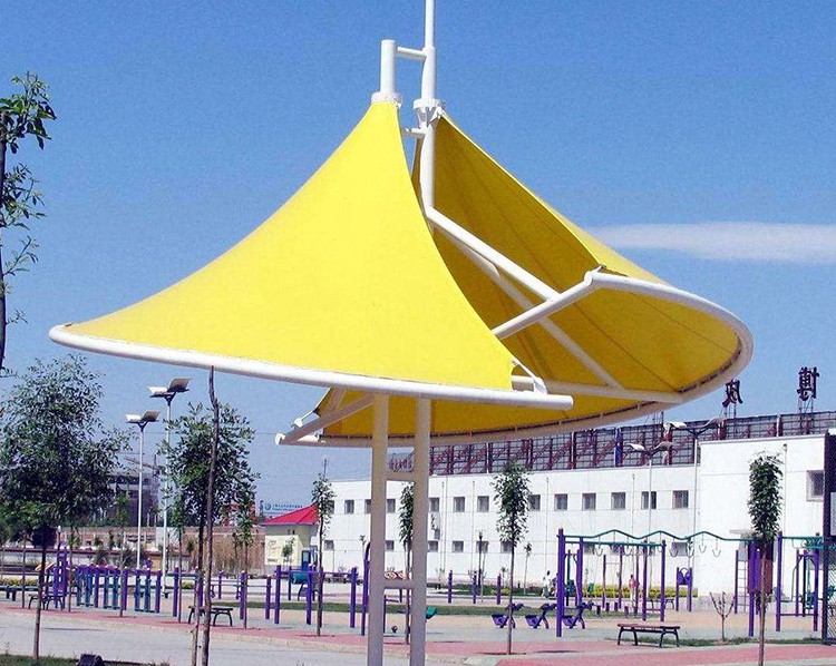 景觀膜結(jié)構(gòu)是一種新型的園林建筑,是在20世紀(jì)中期發(fā)展起來的一種新型建筑結(jié)構(gòu)形式,它是由多種高強(qiáng)薄膜材料以及加強(qiáng)構(gòu)件通過一定的方式使內(nèi)部產(chǎn)生一定預(yù)張應(yīng)力以形成某種空間的形狀,一般與園林景觀溶為一體,創(chuàng)造出讓人們盡情享受的快樂空間,充分展示了景觀膜結(jié)構(gòu)的藝術(shù)之美,它巧妙的整合周圍的環(huán)境,給人們一種典雅、浪漫溫馨之感。