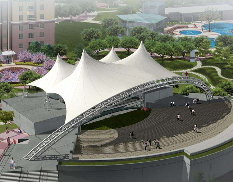 2、膜結(jié)構(gòu)景觀小品在環(huán)境中審美功能是它的屬性,它通過造型、色彩、材質(zhì)、肌理向人們展示其形象特征,同時也包含著一定的文化內(nèi)涵。景觀膜結(jié)構(gòu)的文化性體現(xiàn)在地方性和時代性當中,它的創(chuàng)造過程就是對這些文化內(nèi)涵不斷升華、提煉的過程,它的文化特征反映在其形象上,結(jié)合周圍的文化背景和地域特征而呈現(xiàn)出不同的設計風格。