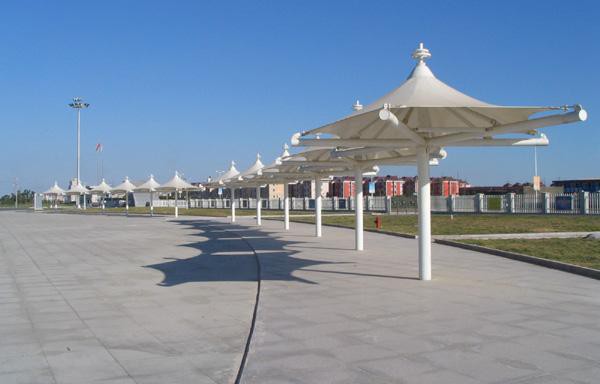 作為一種大跨度結(jié)構(gòu),自重輕通過膜,索具,鋼結(jié)構(gòu)的拉力平衡,可實(shí)現(xiàn)超越距離懸挑,采用膜結(jié)構(gòu)頂棚符合了體育場(chǎng)館的視野寬闊無結(jié)構(gòu)遮擋的建筑要求,成為業(yè)主以及設(shè)計(jì)師選擇結(jié)構(gòu)形式!由于膜材的透光性,白天陽(yáng)光可以透過膜材形成慢射光,是膜覆蓋空間內(nèi)達(dá)到和室外幾乎一樣的自然效果,因此膜結(jié)構(gòu)長(zhǎng)廊能創(chuàng)造出與自然環(huán)境相媲美的空間形式,因此,在城市的入口處,設(shè)計(jì)擁有自己城市鮮明特色和文化韻味的建筑形式乃是每個(gè)城市發(fā)展的選擇之作。
